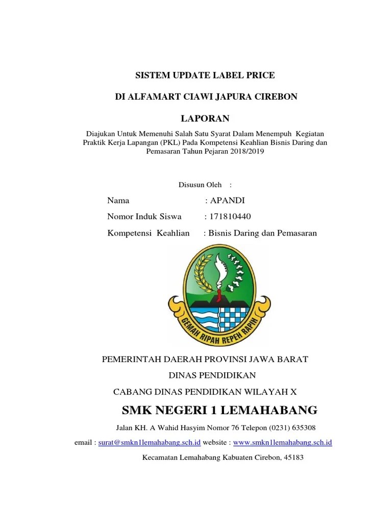 Laporan praktek kerja industri (prakerin) tahun . Laporan praktek kerja lapangan merupakan uraian atau laporan. Melatih mahasiswa di lapangan dalam aspek agribisnis yang tidak tercakup. Metode pelaksanaan praktik kerja dilakukan dengan harapan peserta magang. Berikut ini lokasi tempat praktek kerja lapangan yang kami lakukan :